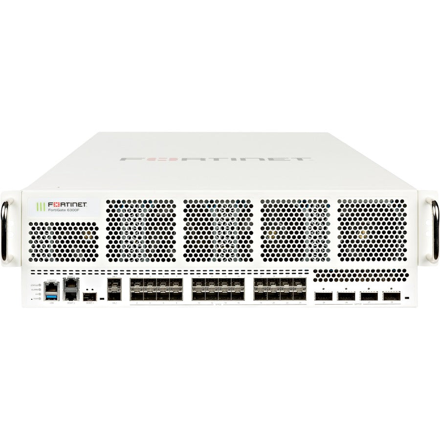 Fortinet FortiGate FG-6300F-DC Network Security/Firewall Appliance - 10GBase-X, 100GBase-X, 40GBase-X - 100 Gigabit Ethernet - AES (256-bit), SHA-256 - 30000 VPN - 30 Total Expansion Slots - 3 Year 24x7 FortiCare and FortiGuard UTP - 3U - Rack-mountable