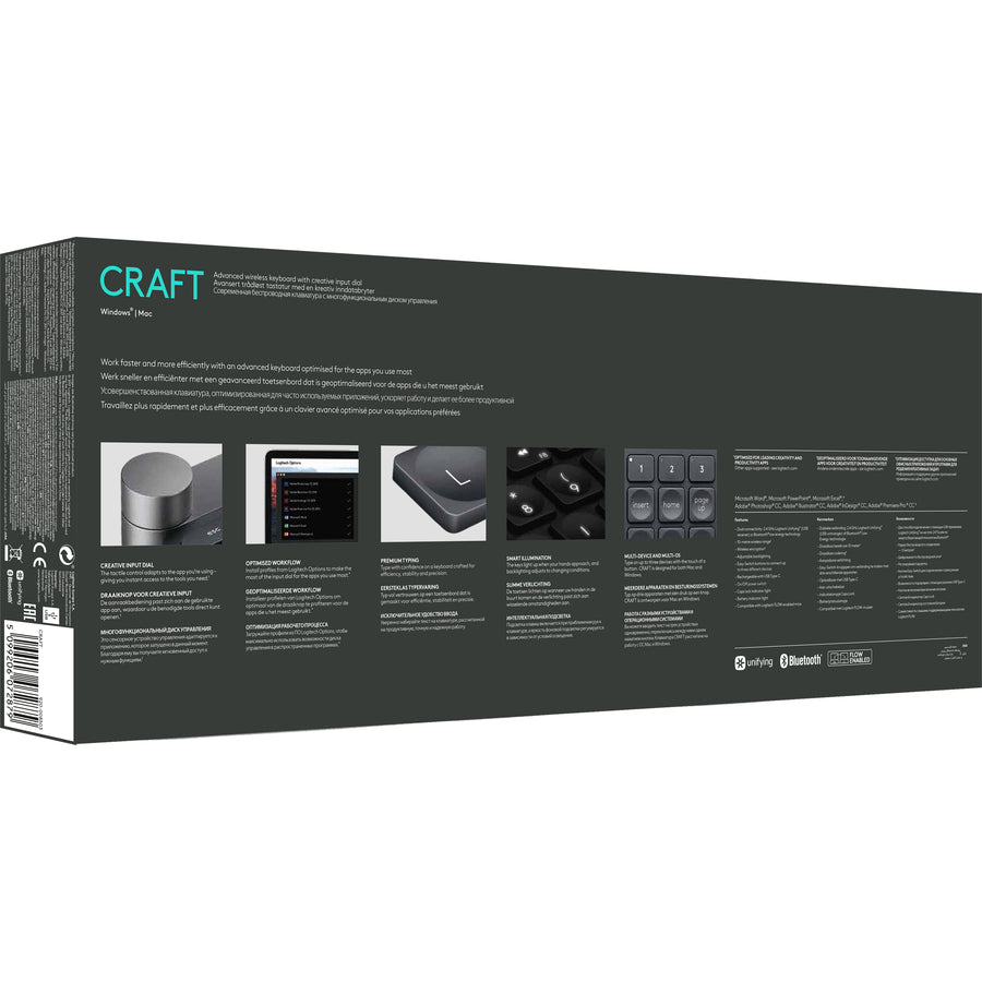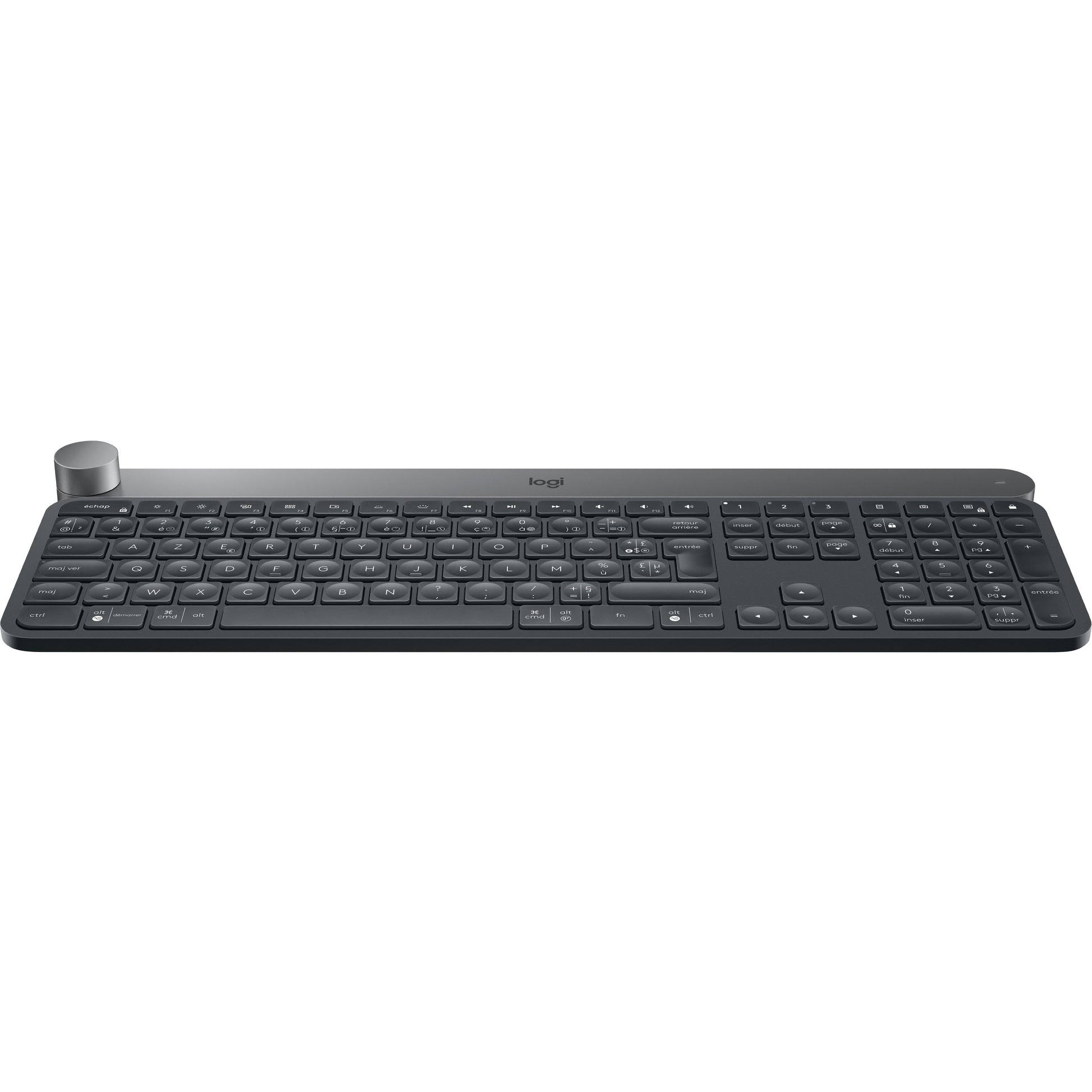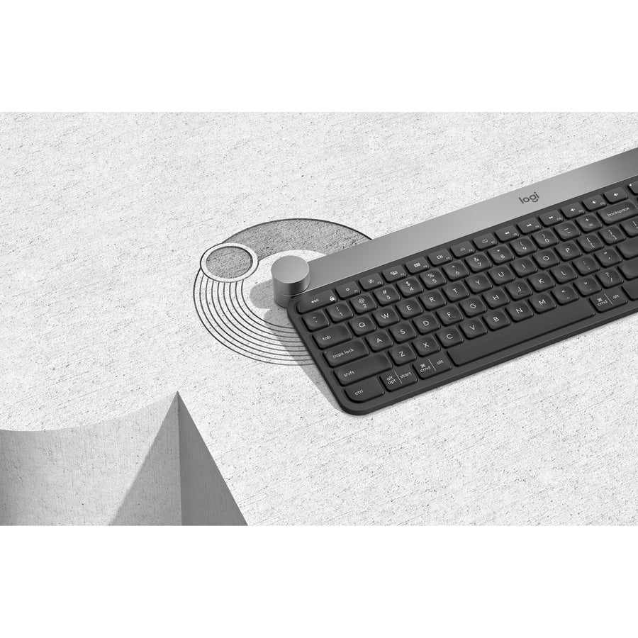 Logitech Advanced Keyboard with Creative Input Dial - Wireless Connectivity - Bluetooth/RF - USB Interface On/Off Switch Hot Key(s) - Jog Dial - Windows, Mac OS - Dark Gray, Aluminum