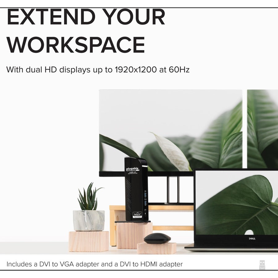 Plugable USB 3.0 Universal Laptop Docking Station Dual Monitor for Windows and Mac