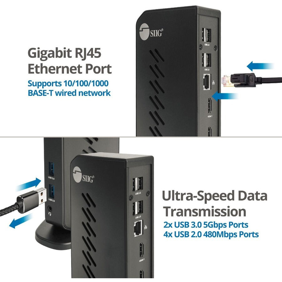 SIIG USB 3.0 Dual Head Full HD 1080p HDMI Video Docking Station - Mirror / Extend / Primary Video Mode - 5Gbps Data Transfer Rate