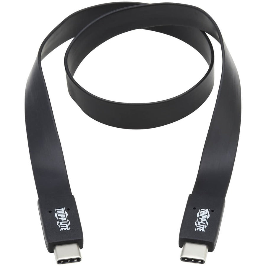 Tripp Lite USB C Cable Flat USB 3.1 Gen2 10Gbps M/M Thunderbolt 3 Black 3ft